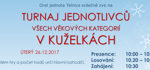 Srdečně vás zveme na vánoční sportovní událost – na Turnaj jednotlivců v kuželkách v úterý 26.12.2017...
