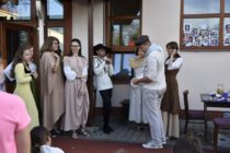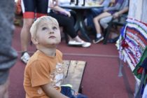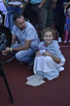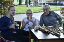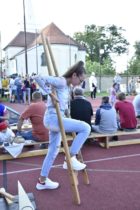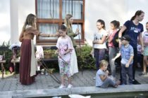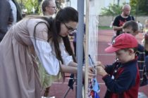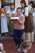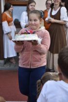 …a navečer, až si všichni užili vše před Orlovnou i za Orlovnou, včetně rytířských bojů a vystoupení alchymistů, mohli jsme se ve výstavním sále zúčastnit zajímavé hudebně naučné show pana Ing. Jana Kašpaříka. Co vše dokážeme s píšťalkami jsme ani nevěděli. A nakonec hurá zpět na hřiště, kde po dražbě středověkého domácího chleba a paštiky dochází k losování našich drobných i méně drobných „štěstíčkových cen“, krásného dortu od Petry Hrazdírové a nakonec i zlatého hřebu Jarmarku – živého kůzlátka, který věnovala rodina Šustrova od rybníka ze svého „Andělského chovu.“