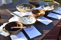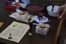 Hned vedle zvířátek, a také přes cestu, bychom se potom zastavili u zboží z Kociánky, která se k nám po letech zase vrátila a opět nabízela pěkné a zajímavé zboží. Ovšem naproti bylo zase další lákadlo na mls, tentokrát stánek se sýry pana Svobody, vedle krásná voňavá mýdla pana Maršálka, který také již dlouhá léta zůstává našemu Jarmarku věrný. Totéž platí o stánku s kořením od Davídka, které zavonělo celý vstup do Orlovny. A nešlo by vstoupit do Orlovny, aniž bychom se nezastavili u stánku s občerstvením Standy Krále s jelením guláškem, kýtou a kukuřičkami.