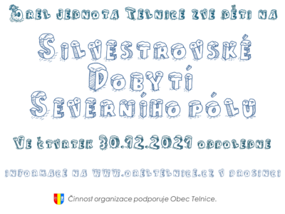 připravujeme na 30.prosince 2021 „Silvestrovské dobytí severního pólu“. Bude to akce na čerstvém vzduchu, takže předpokládáme, že se rádi proběhnete či projdete, podrobné propozice pro statečné polárníky budeme aktualizovat na našich stránkách a plakátech. Hlavně si nezapomeňte housera. ;-) V případě úspěšného dobytí severního pólu